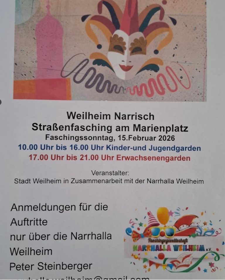 Weilheim Narrisch Straßenfasching ab 12 Uhr – 16 Uhr für euch da